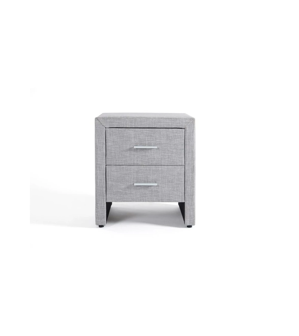 Une table de chevet tout en tissu gris, qui s’accorde très bien avec tout type de chambre. Cette table de nuit design vous offre deux tiroirs de rangement assez profonds pour ranger vos affaires. Un ensemble homogène, soigné, avec de belles finitions.