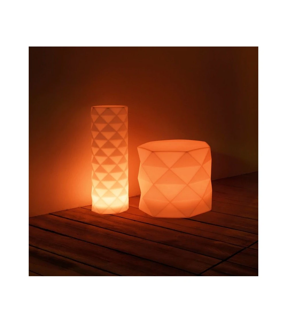 Vondom Marquis, provenant de l’inspiration du taillage de diamants. Son dessin polygonal rappelle des facettes crées par le taillage. Les formes claires et stylées impactent visuellement. Circulaires ou ovales, et dans deux combinaisons de couleur, ils rendent grand dynamisme aux espaces. La lampe est aussi utilisable en intérieur.